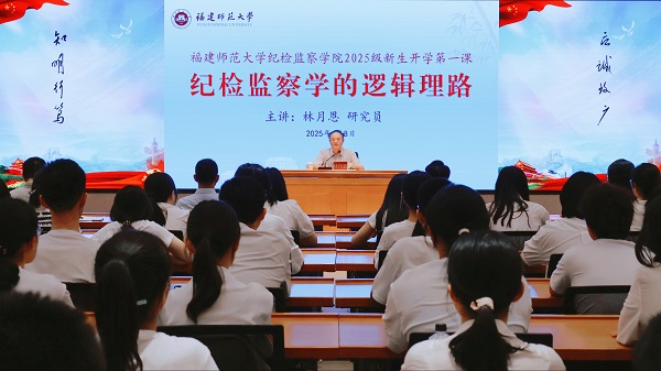 9月8日,校纪委书记、省监委驻福建师范大学监察专员、省纪检监察学科建设分会会长林月恩研究员以“纪检监察学的逻辑理路”为题,为纪检监察学院2025级新生讲授开学第一课。校纪检监察巡察机构干部、纪检监察学院教师、纪检监察实验班学生参加讲座。