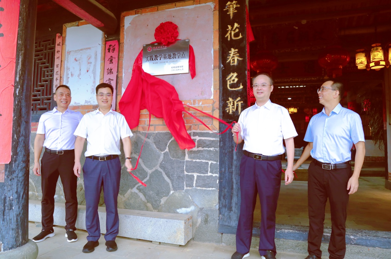 活动首站在清代御史江春霖故居举行,林建伟、林月恩、李国彬、陈超凡共同为“实践教学基地教学点”揭牌。揭牌仪式后,纪校双方人员走进江春霖故居开展现场教学。在这座被誉为“百廿间大厝”的明清风格建筑中,大家循着史料实物,重温“清代御史第一人”江春霖六年间六十余起封奏、弹劾权贵的刚正事迹,感悟他归乡时“唯有旧衣与旧书”的清廉本色及兴修水利、造福乡邻的为民情怀。在莆阳御史文化馆,林建伟、林月恩共同为“实践教学基地”揭牌并分别致辞。