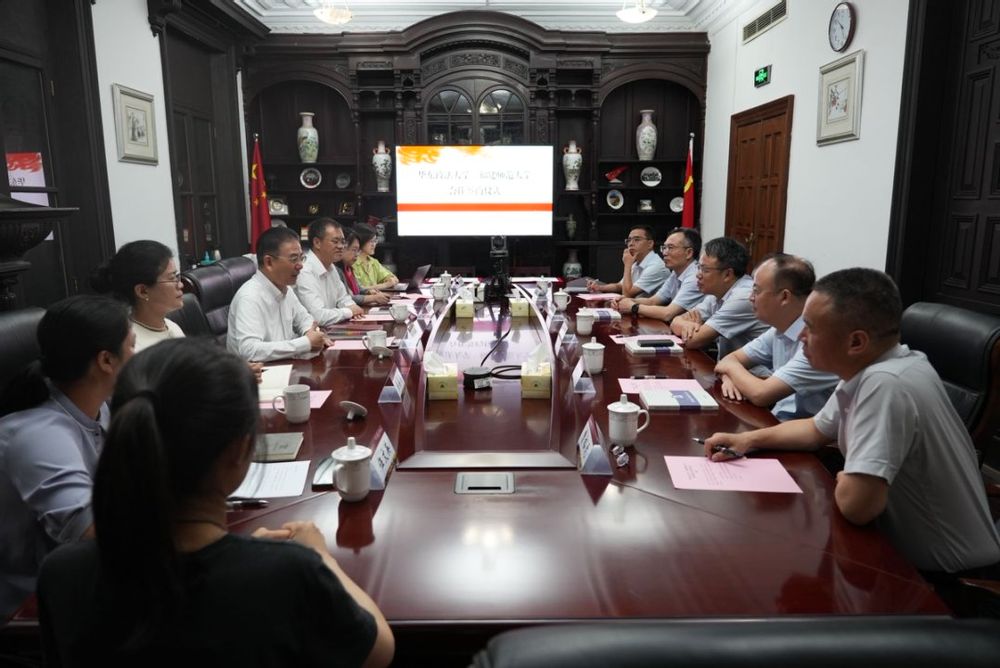 郭为禄对潘玉腾一行的到来表示热烈欢迎,介绍了两校战略合作的基础和目的。他指出,福建师范大学办学历史悠久、人文底蕴深厚、学科门类齐全,综合办学实力稳居全国同类院校先进行列,特别在教师教育、对台交流合作、人文社科研究等领域优势明显、特色鲜明,与华东政法大学推进多学科融合的战略愿景高度契合。郭为禄表示,希望两校以此次签约为契机,在纪检监察学、马克思主义理论等学科领域加强交流、深化协作,推进资源共享、优势互补,共同打造特色鲜明、融合创新的学科高地,共同为加快构建纪检监察学自主知识体系、推动纪检监察学高质量发展贡献更多力量。