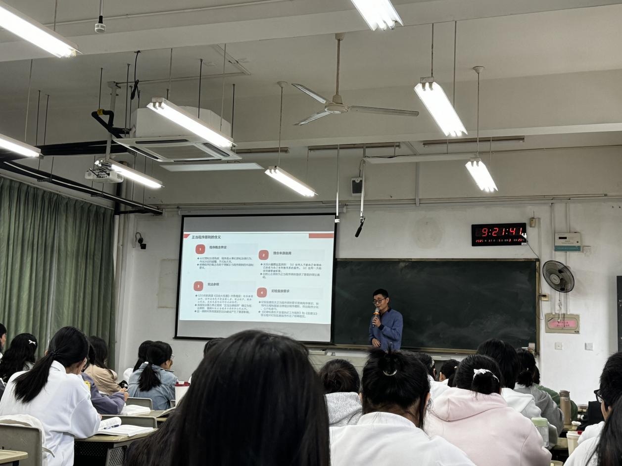 在课堂展示环节,游海疆老师首先介绍纪检监察的基本政策和工作方法的内涵,通过理论分析与案例解剖相结合的方式,生动阐释了“不敢腐、不能腐、不想腐”三位一体的基本政策,以及“纪法分开、纪在法前、纪严于法、纪法贯通”的工作方法。课堂既有理论分析,也有案例解剖,师生互动频繁。